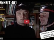 Fahrenheit 451 (1966), regia di François Truffaut tratto dall'omonimo romanzo di Ray Bradbury, vede il capitano Beatty (Cyril Cusack, a destra) guidare...